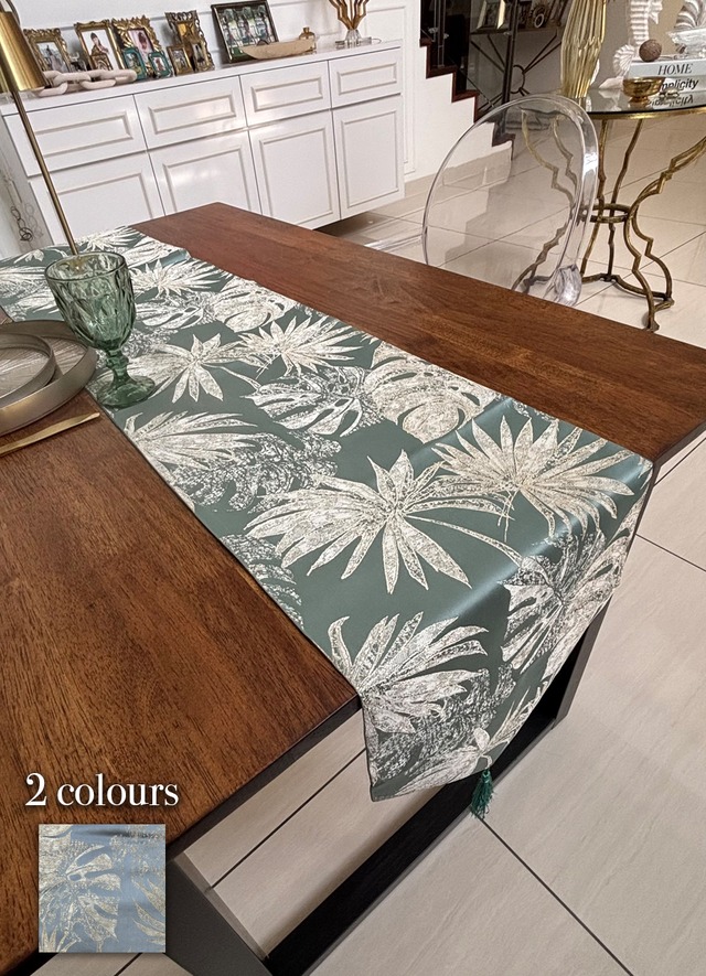 刺繍パームリーフ テーブルランナー 150cm TR-150-PLF-GRN