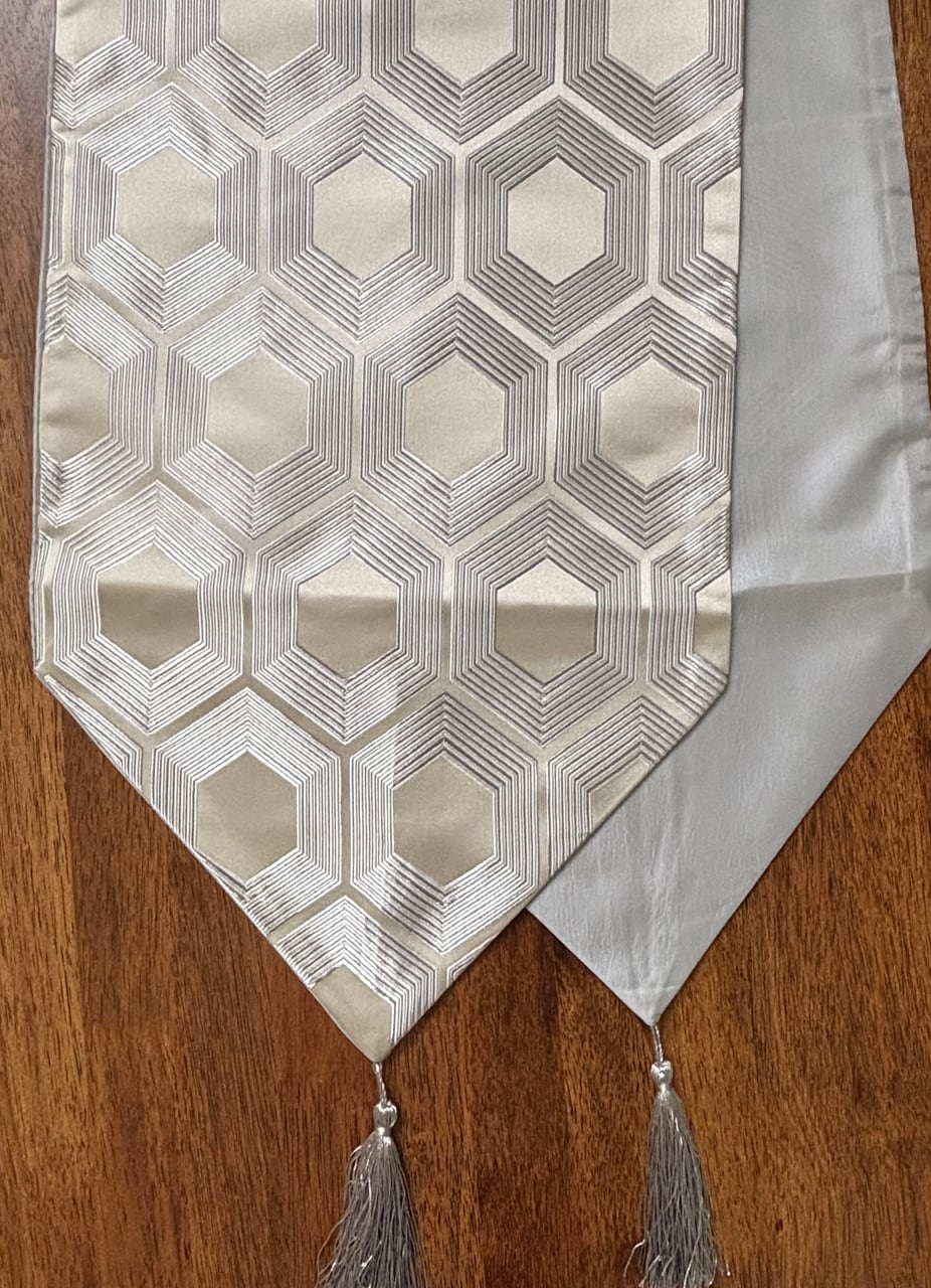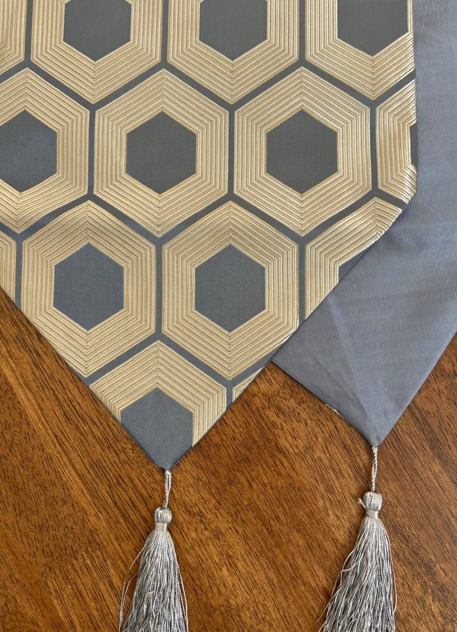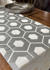 日本の伝統文様である亀甲(きっこう)模様のテーブルランナーです。