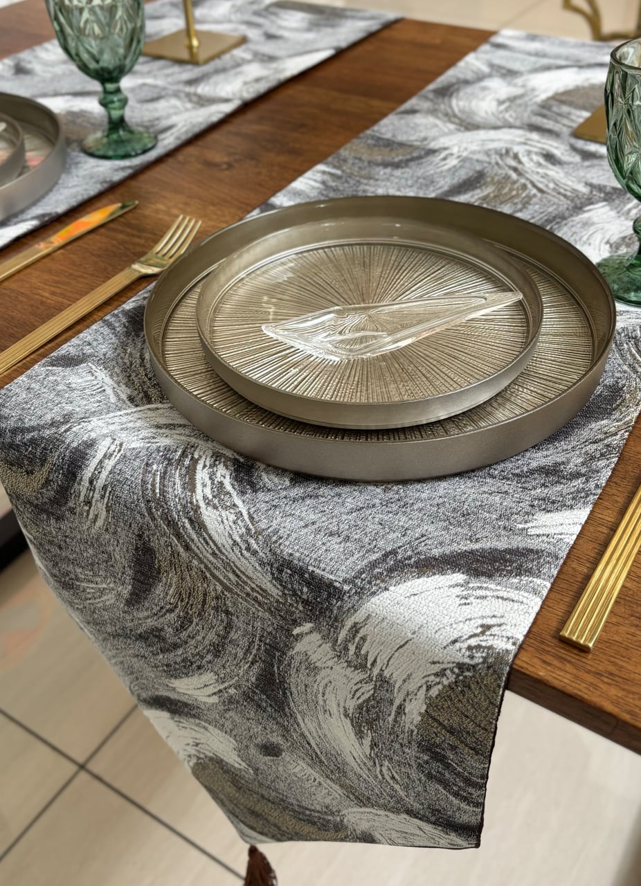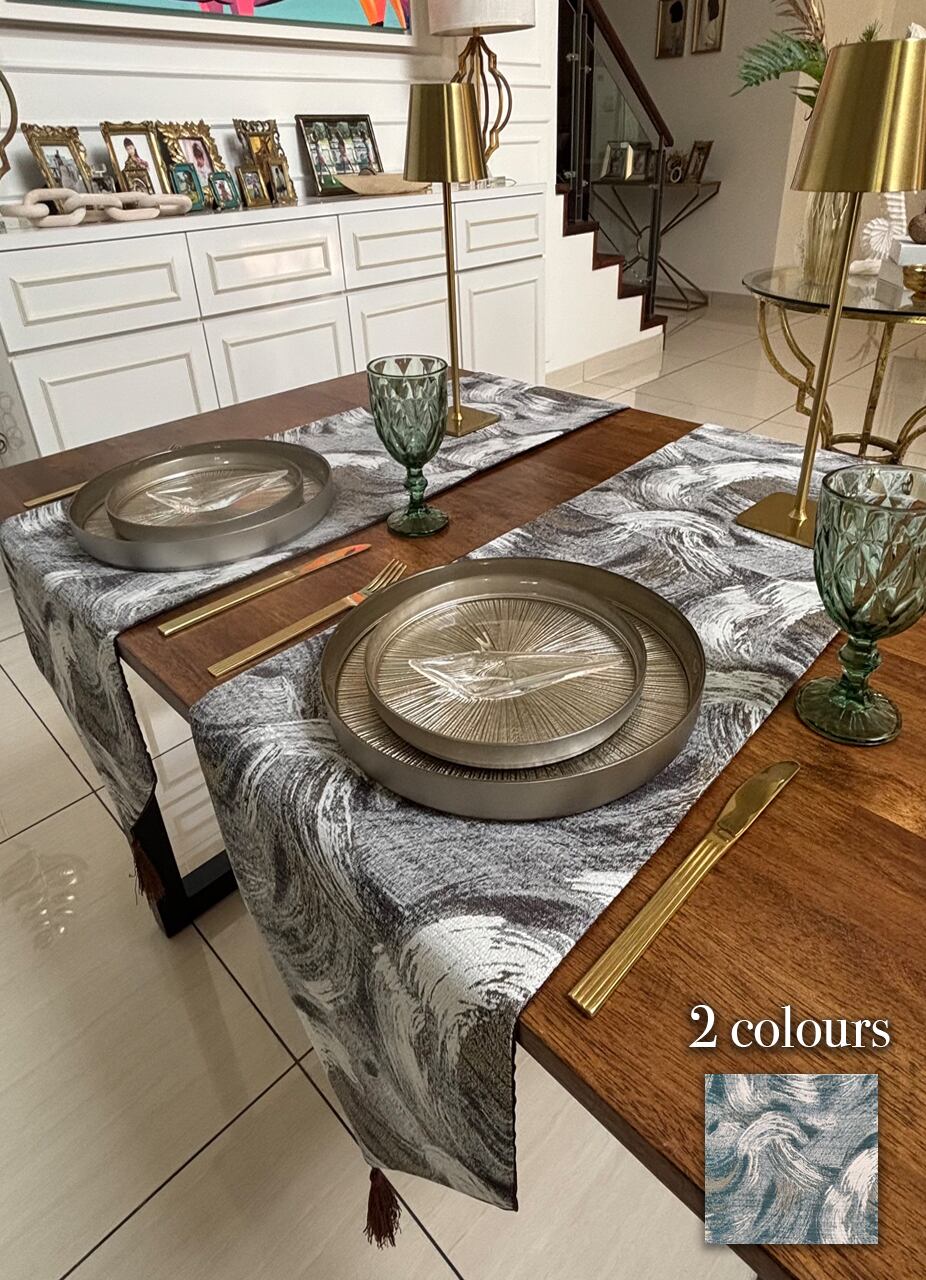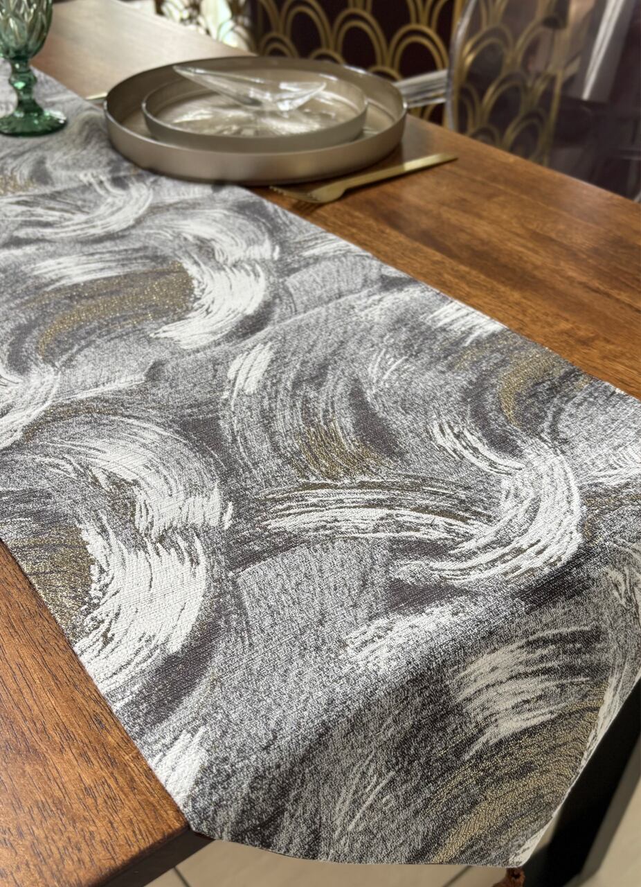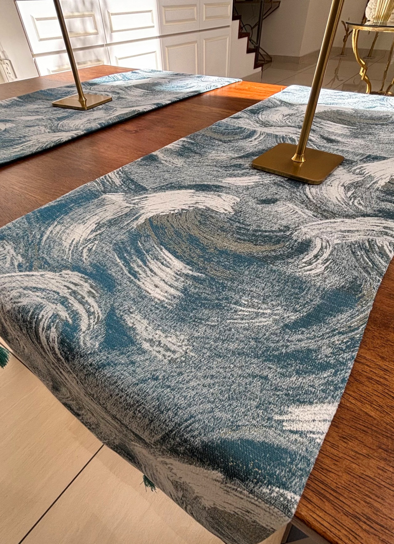 刷毛で描いた美しい波模様が魅力の「波墨」テーブルランナー。