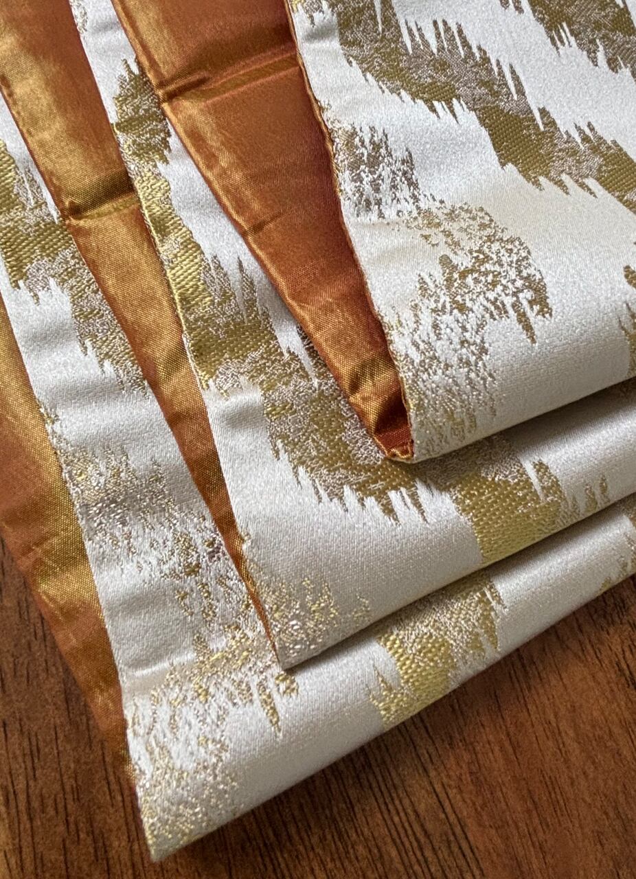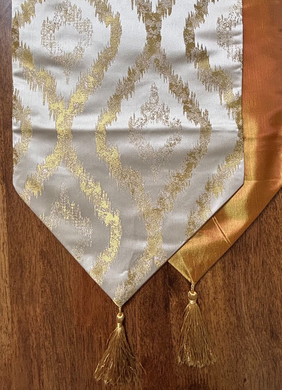 上品なイーブルアイデザインが目を引くテーブルランナー。
