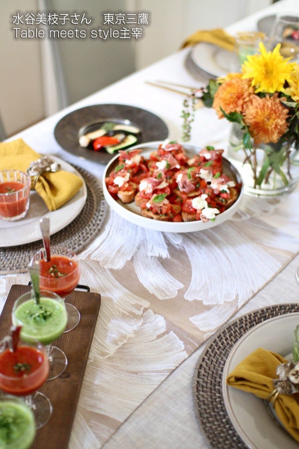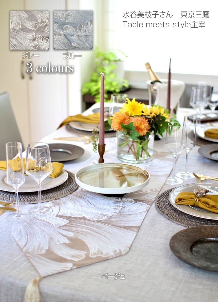 美しいシェニール織によるテーブルランナーが、ダイニングを華やかに演出します。