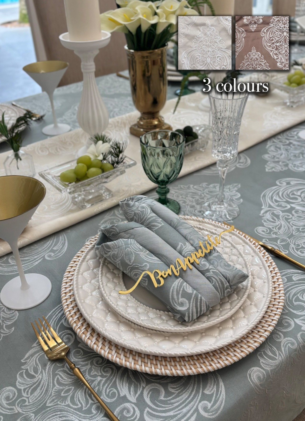 エレガントなダマスク柄で、テーブルに華やかさをプラスします。