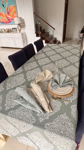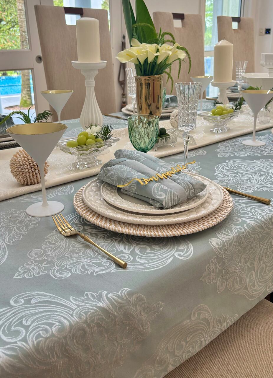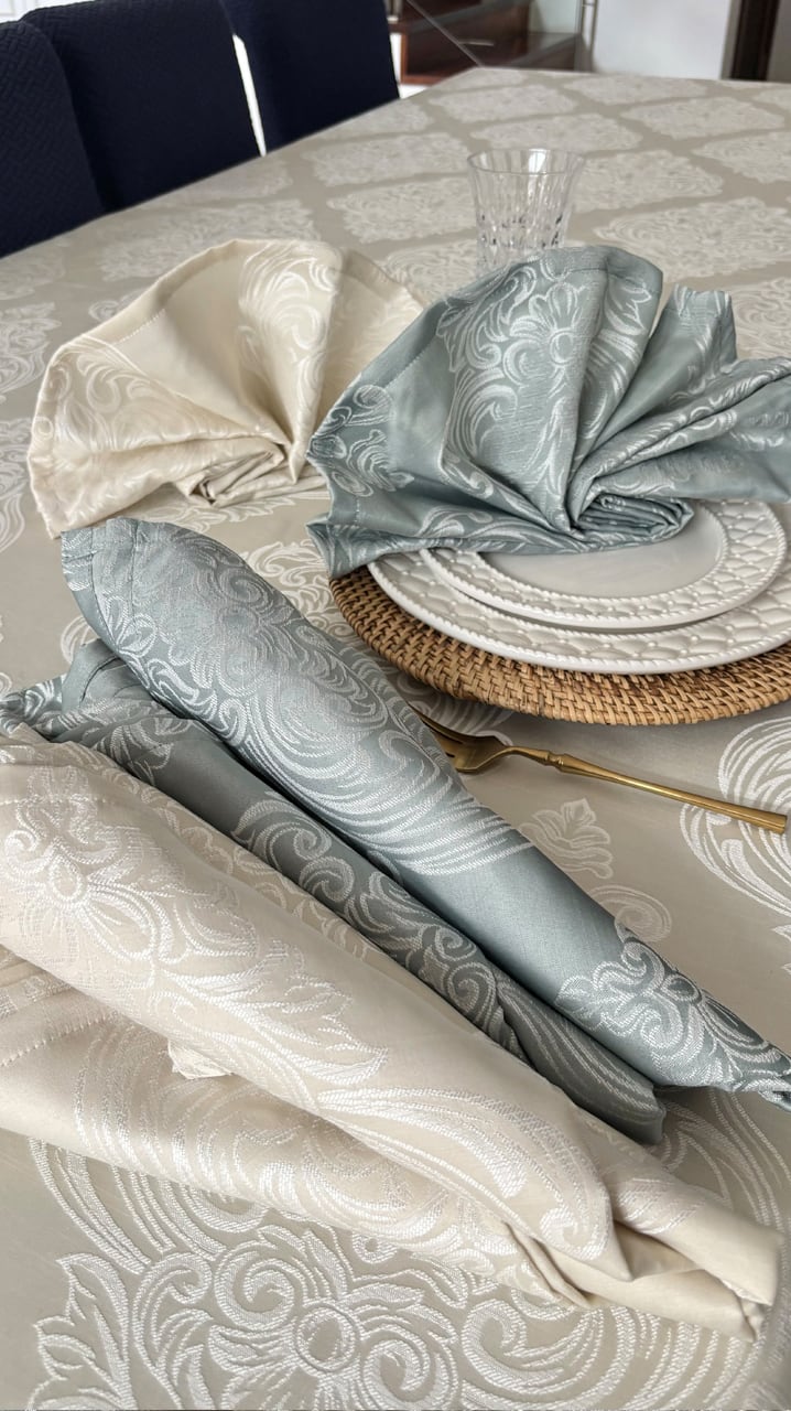 エレガントなダマスク柄が特徴のテーブルクロス。