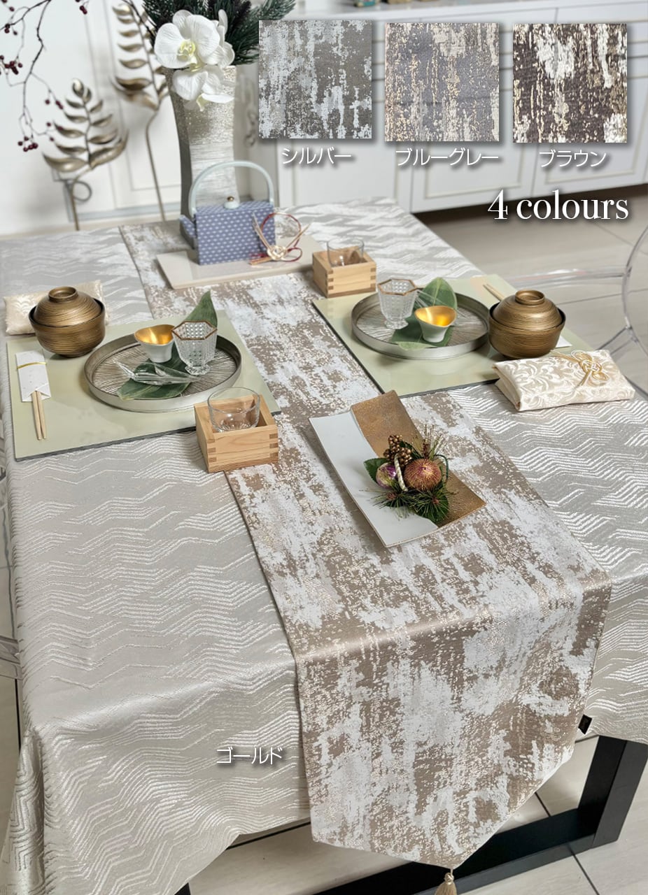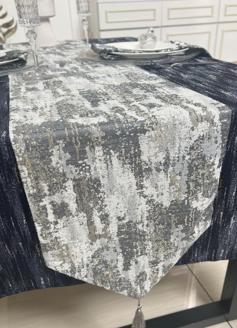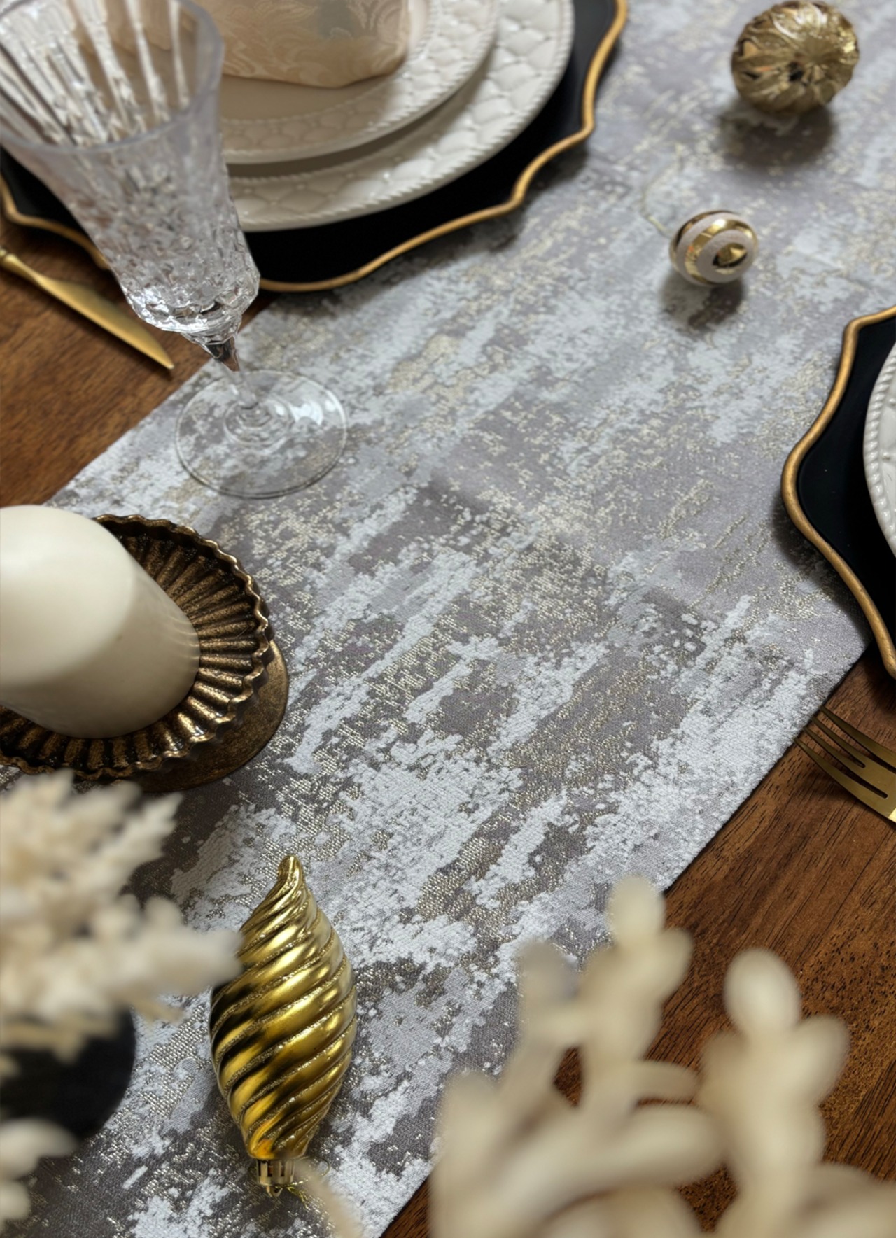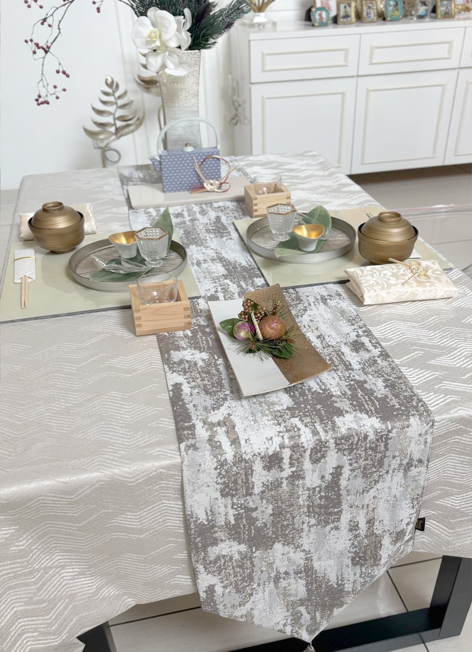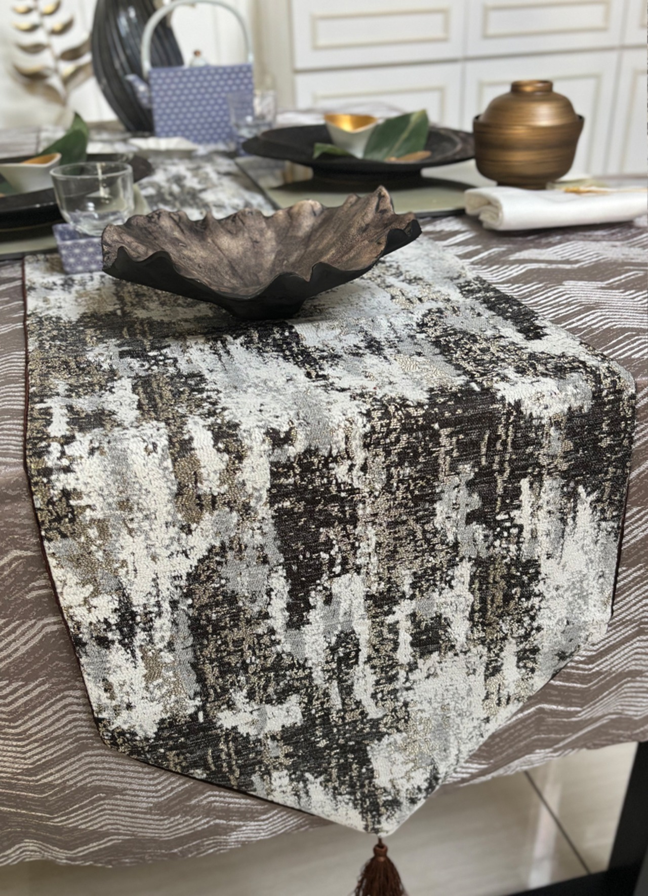 大理石のようなデザインが印象的な霞石テーブルランナー。