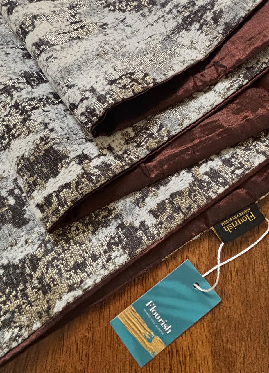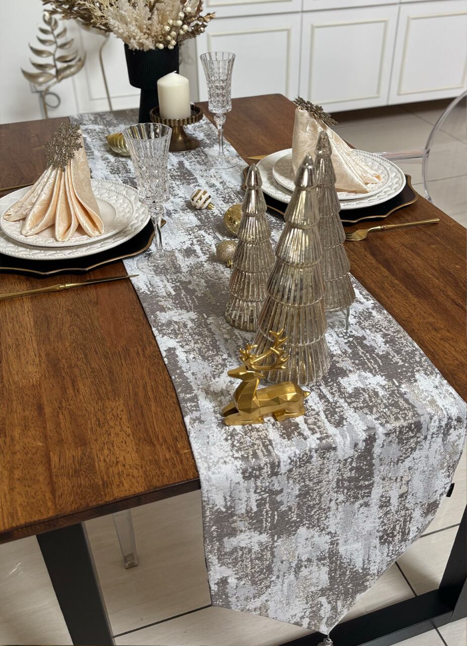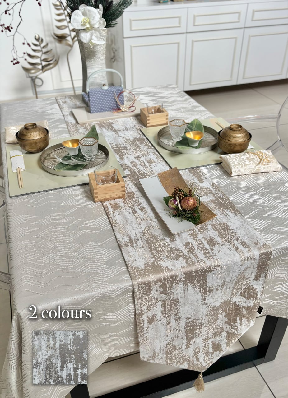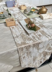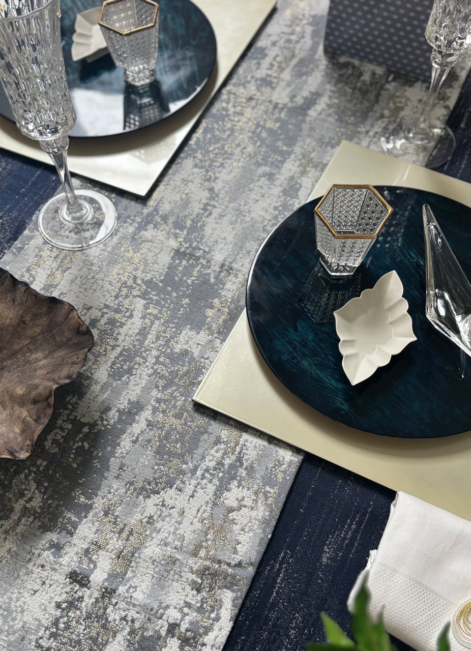 大理石のようなデザインが印象的な霞石テーブルランナー。